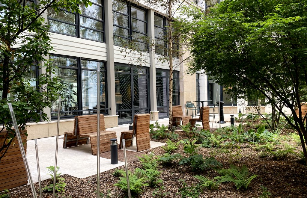 Livraison des jardins et terrasses du Centre d’Affaire Paris-Victoire, rue de la Victoire à Paris 9ème.