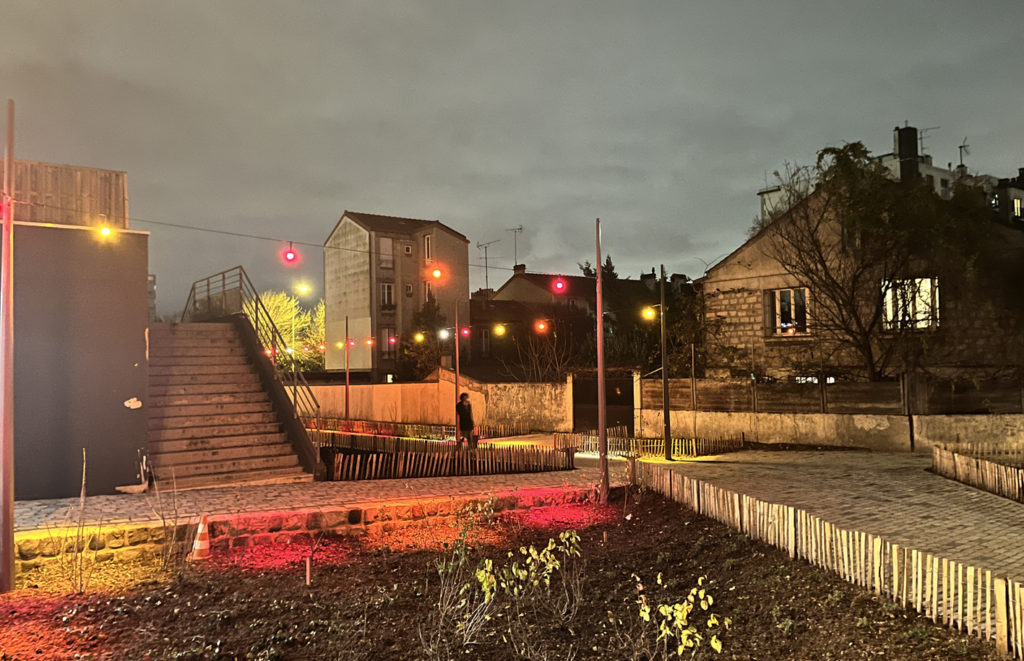 Cette mise en lumière hivernale offre une nouvelle lecture du chantier en cours : un parcours apaisé, jeux d’ombres et de clarté, révélant la qualité des aménagements et l’identité nocturne de Bagnolet.