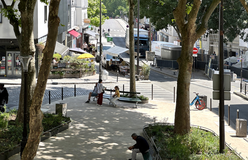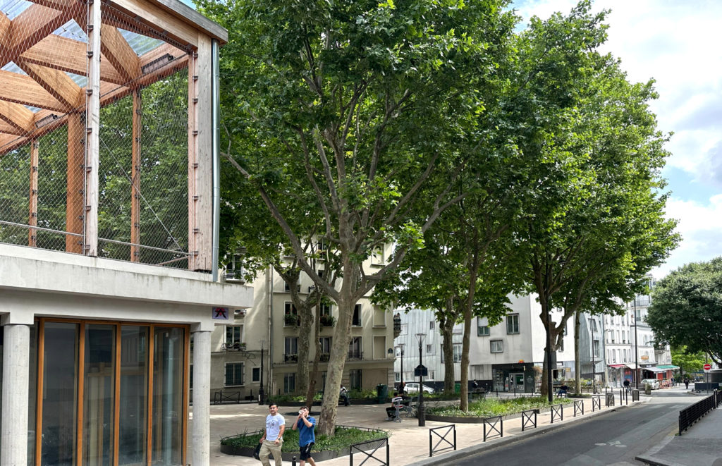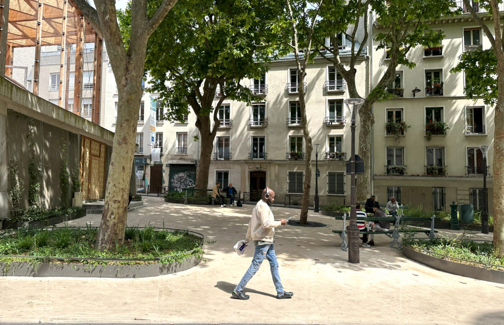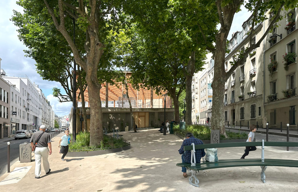 répond aux ambitions portées par les habitants et la ville de Paris : préserver et conforter les arbres existants, végétaliser la place, la rafraîchir, désimperméabiliser le sol et ancrer des usages conviviaux dans le lieu.