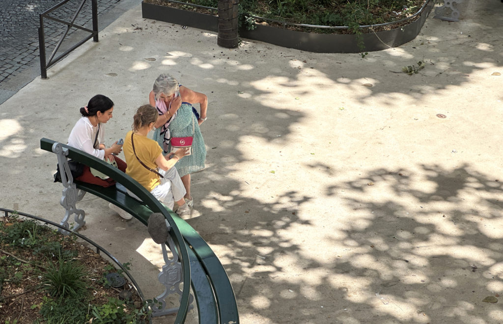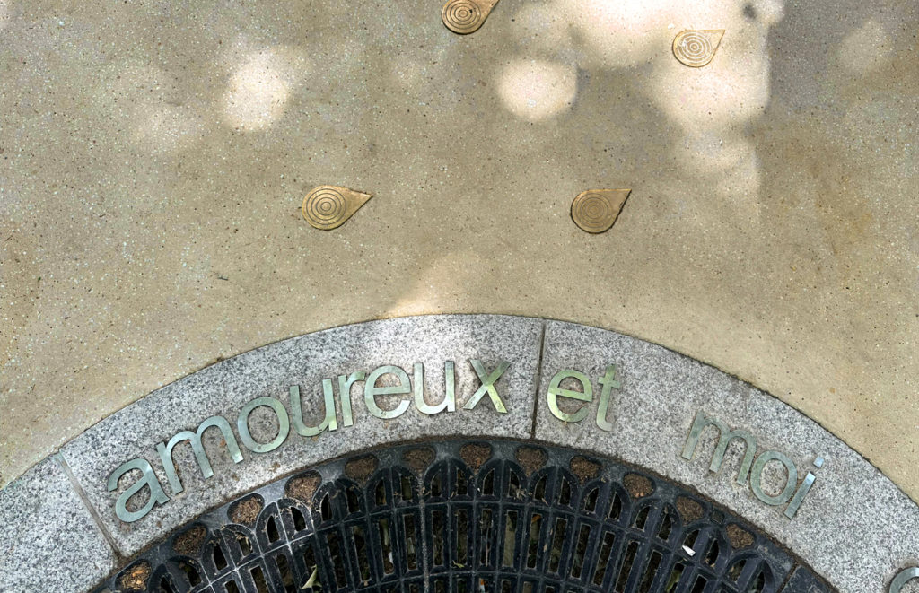 Les bancs Davioud traditionnels du Paris haussmannien sont réinterprétés en courbes pour épouser les formes de la place et des paroles d’une chanson de Cheikha Remitti sont gravées au sol autour de l’arbre central.