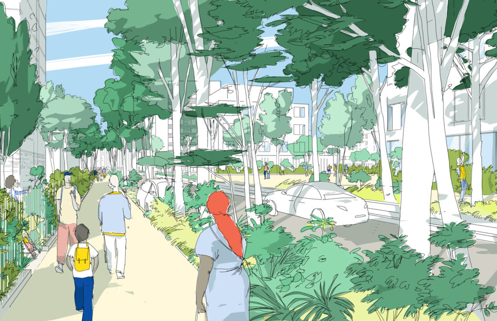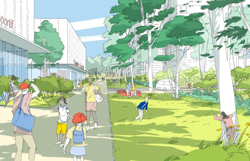 Première tranche du renouvellement urbain (NPRU) d’un vaste quartier (25 ha) en pleine transformation, répondant à de fortes ambitions sociales et environnementales (Quartier Fertile / Quartier Résilient), pour recréer un cadre urbain et paysager largement boisé, confortable et apaisant.